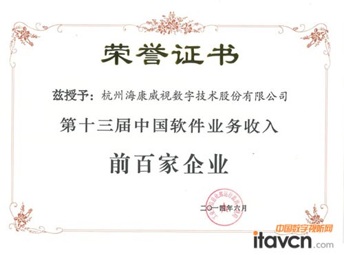 【中國數字視聽網訊】6月12日,工業和信息化部運行監測協調局在青島發布了2014年(第13屆)中國軟件業務收入前百家企業(簡稱軟件百家)名單。海康威視位列中國軟件百強企業第11位,相比去年上升了4位。