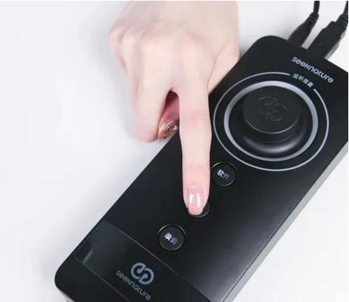 對于戶外主播而言,森然播吧Ⅲ同樣十分友好。它可以預設多種音效,并且可以自行錄制和替換音效,隨時可以脫機帶到戶外使用手機開播。聲卡搭配一個圓形便攜遙控器,操作起來十分方便。
