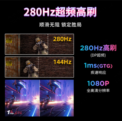 VX24G11搭載高達280Hz的超高刷新率,遠超傳統(tǒng)顯示器的60Hz或144Hz標準,為FPS、MOBA、賽車等高速動態(tài)游戲帶來前所未有的暢爽體驗。在高速移動與激烈對戰(zhàn)場景中,280Hz刷新率能夠顯著減少畫面撕裂與拖影,確保每一幀畫面都清晰可見,助力玩家搶占先機。配合1ms GTG響應時間,VX24G11幾乎消除了輸入延遲與殘影現(xiàn)象,確保玩家實現(xiàn)精準操作反饋,達到“眼動手動”的即時效果。