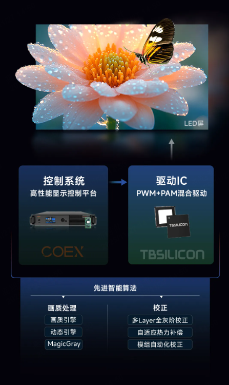諾瓦有幸參與其中,為該顯示產品提供基于PWM+PAM混合驅動的無極Infinity顯控/驅動解決方案。