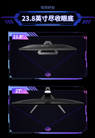VX24G81-2K采用23.8英寸“黃金電競尺寸”,這是由于電競玩家的視域范圍常常集中在屏幕中心,過大的屏幕尺寸會讓邊緣畫面需要眼球轉動甚至頭部移動才能捕捉,在分秒必爭的電競場上容易因為信息損失而敗北。23.8英寸的屏幕寬度恰好與人體自然坐姿下的視域范圍匹配,配合2560×1440的QHD分辨率,實現了123 PPI的像素密度,平衡了電競玩家的視野與專注。