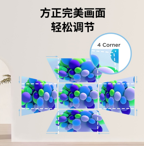 LX720-4KC支持1.3倍光學變焦與1.13~1.47的投射比,在2.5~3.2米的距離內即可投影出100英寸大畫面,適配多種家庭空間布局;配合水平/垂直梯形校正與四角校正功能,即使非正對安裝也能輕松獲得方正畫面,安裝調試更加便捷。